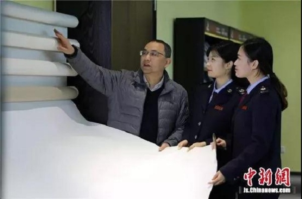 伴随着机器的轰鸣声,工作人员手提颜料桶,一遍遍上胶打磨,青灰色的亚麻画布就这样卷成了半人高的卷轴。无锡税务部门到江苏凤凰画材科技股份有限公司走访时,陈卫宏正带着客户参观生产情况。